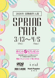 シューズモリ本店・モード エ ジャコモ ブティック・アピエ202・ハッシュパピー長崎店では、2026年3月13日より「2026 Spring FAIR」を行います。